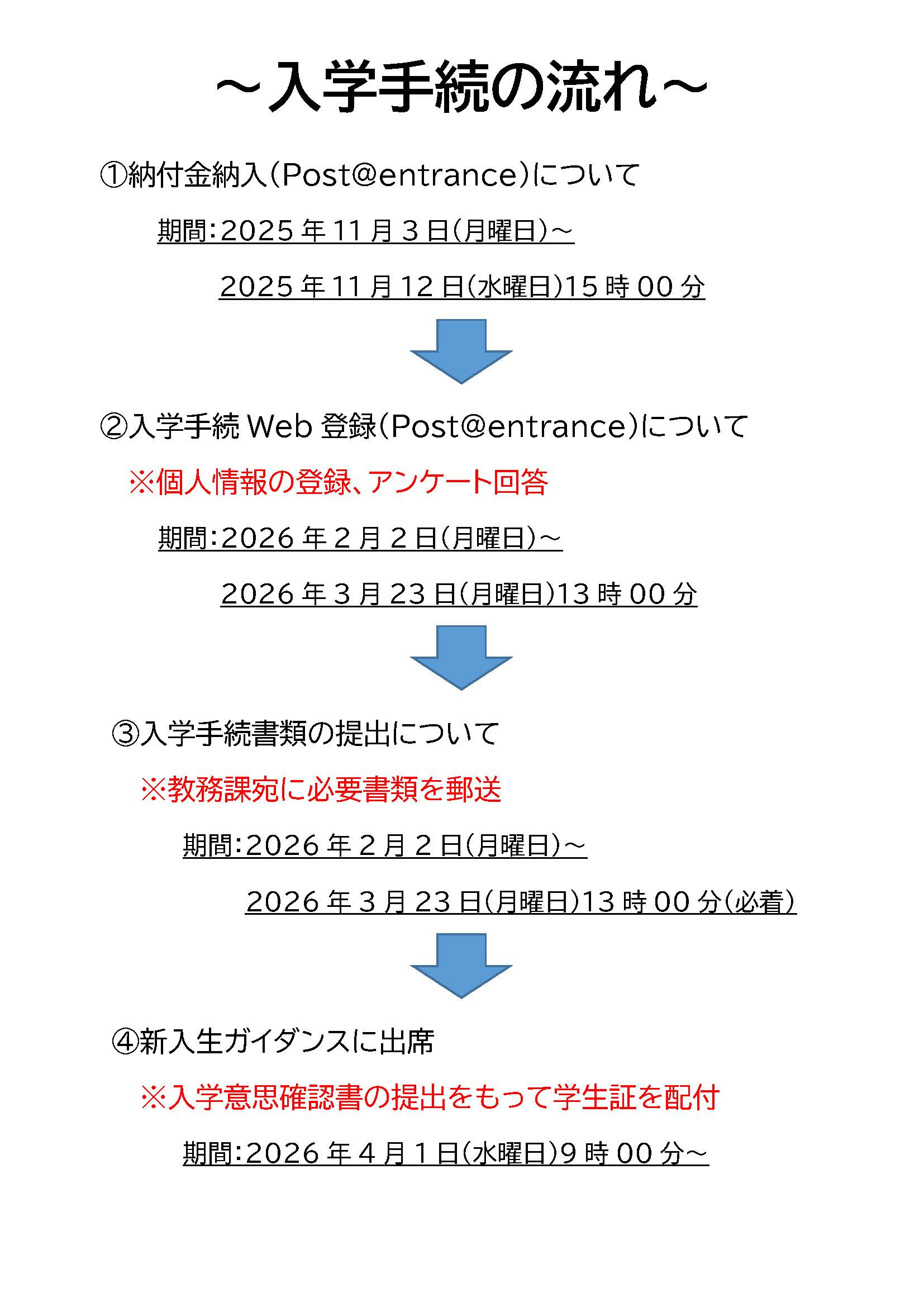 入学手続Web登録は、2026年2月2日(月曜日)以降に可能となります。