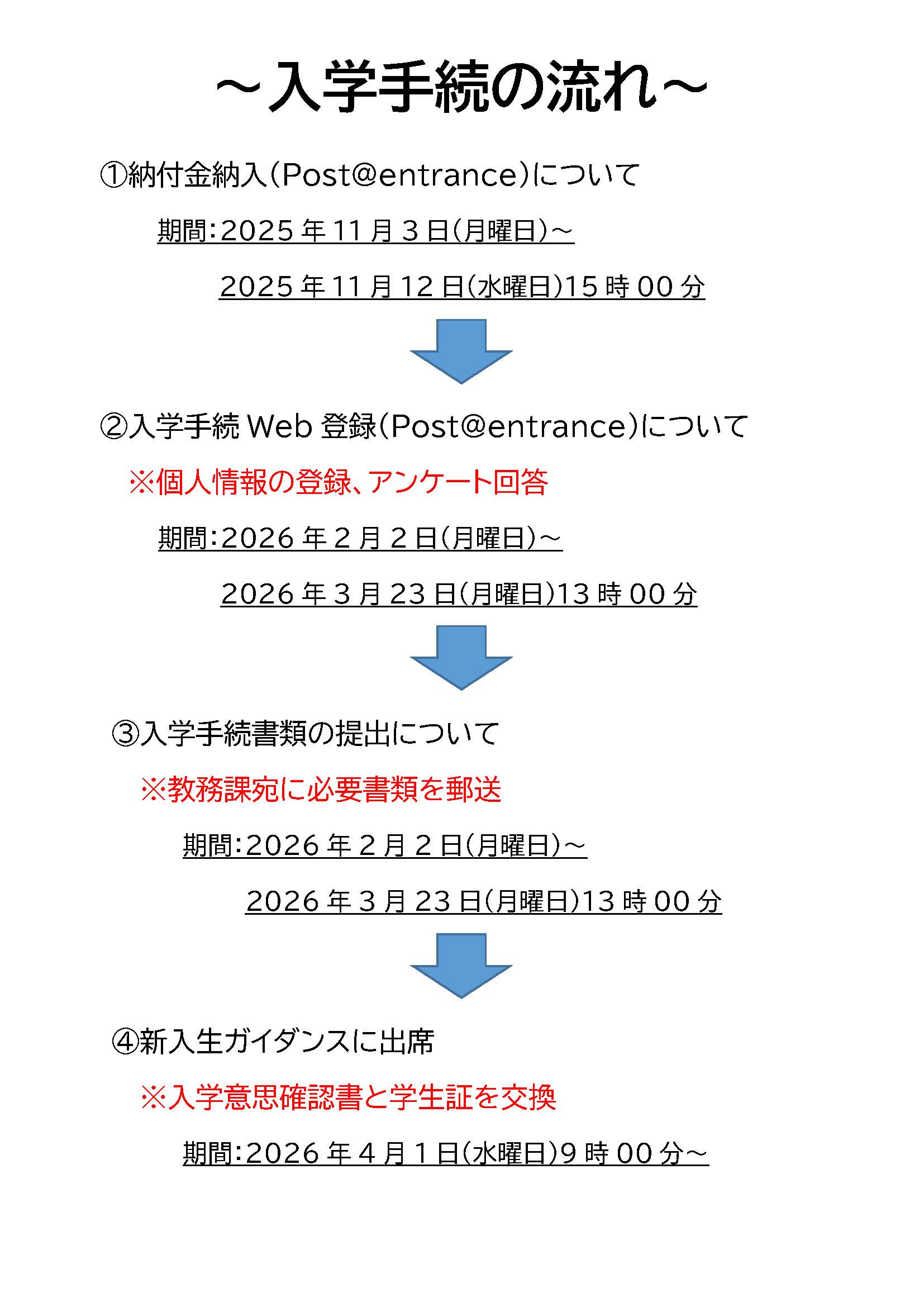 入学手続Web登録は、2026年2月2日(月曜日)以降に可能となります。