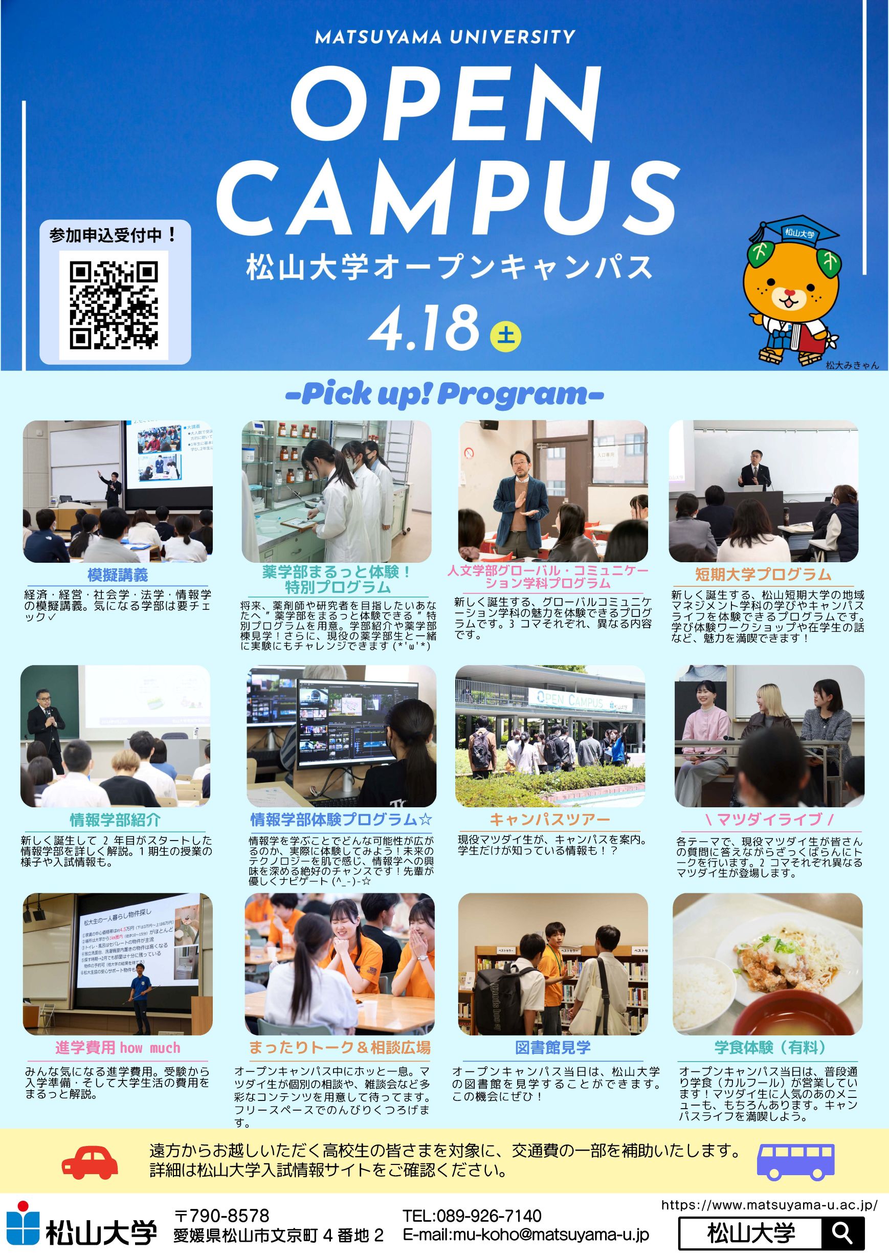 また、遠方の高校生を対象とした「交通費補助制度」も実施します。是非ご活用ください!
